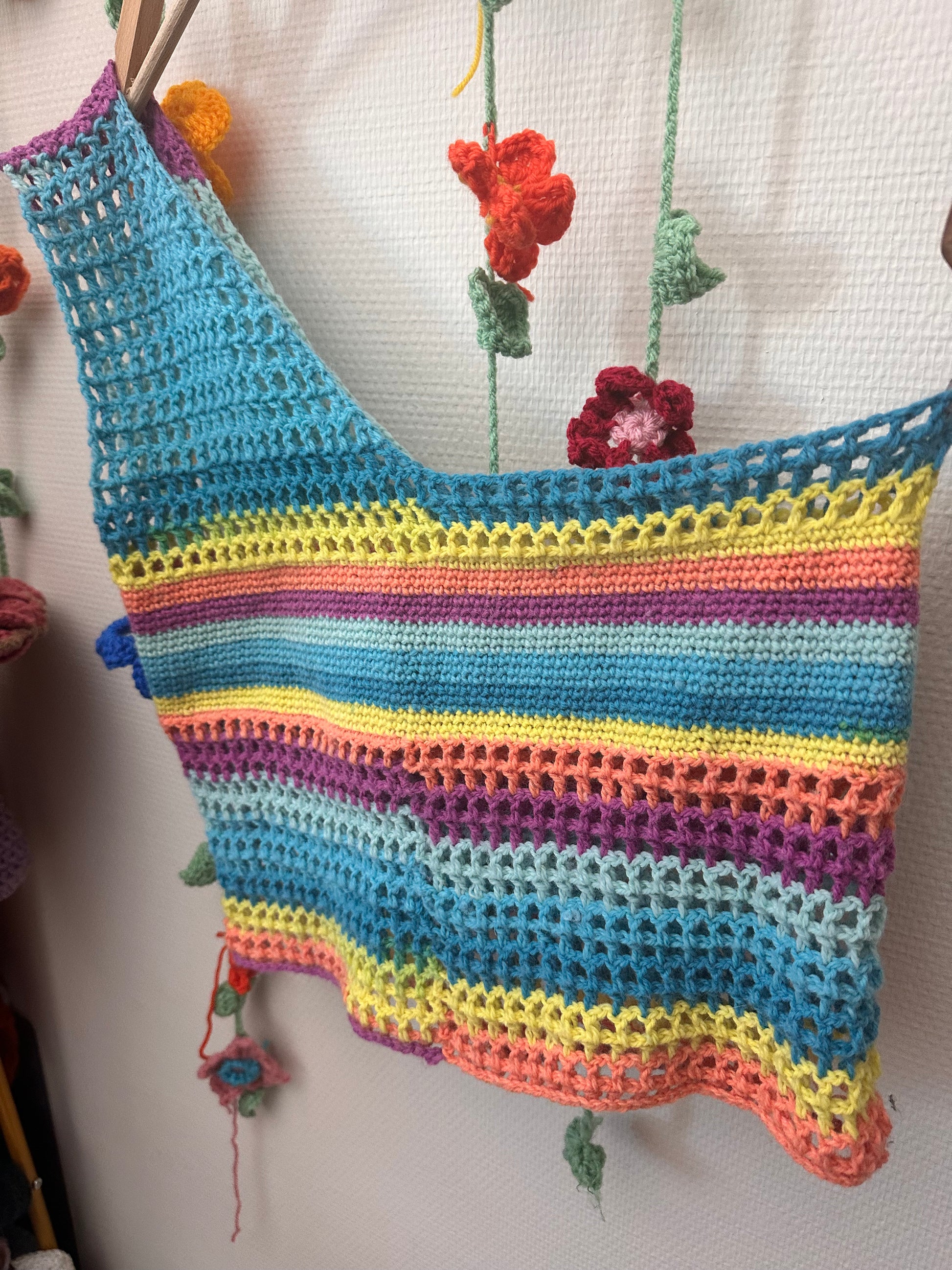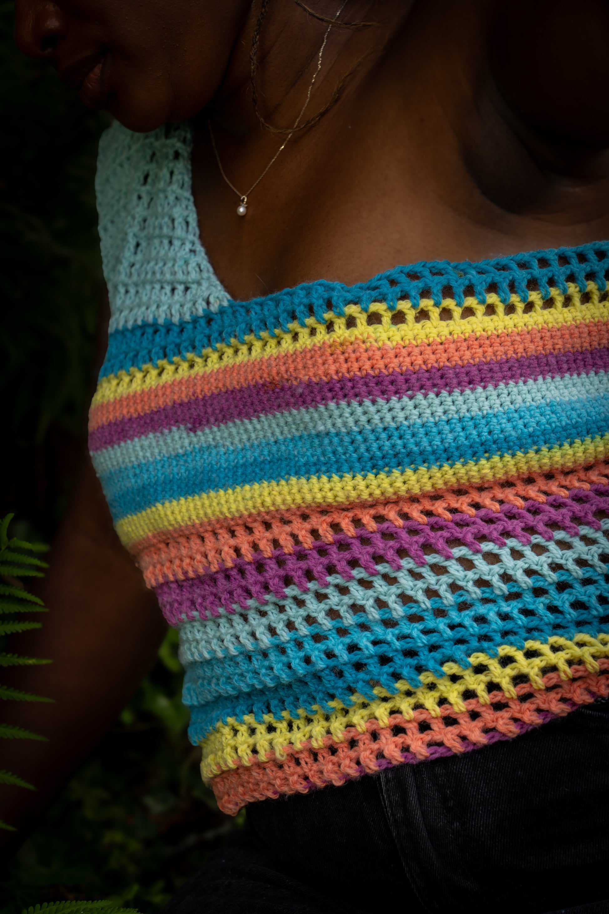Le haut Soléa incarne la finesse du crochet artisanal dans une version ajourée et légère.