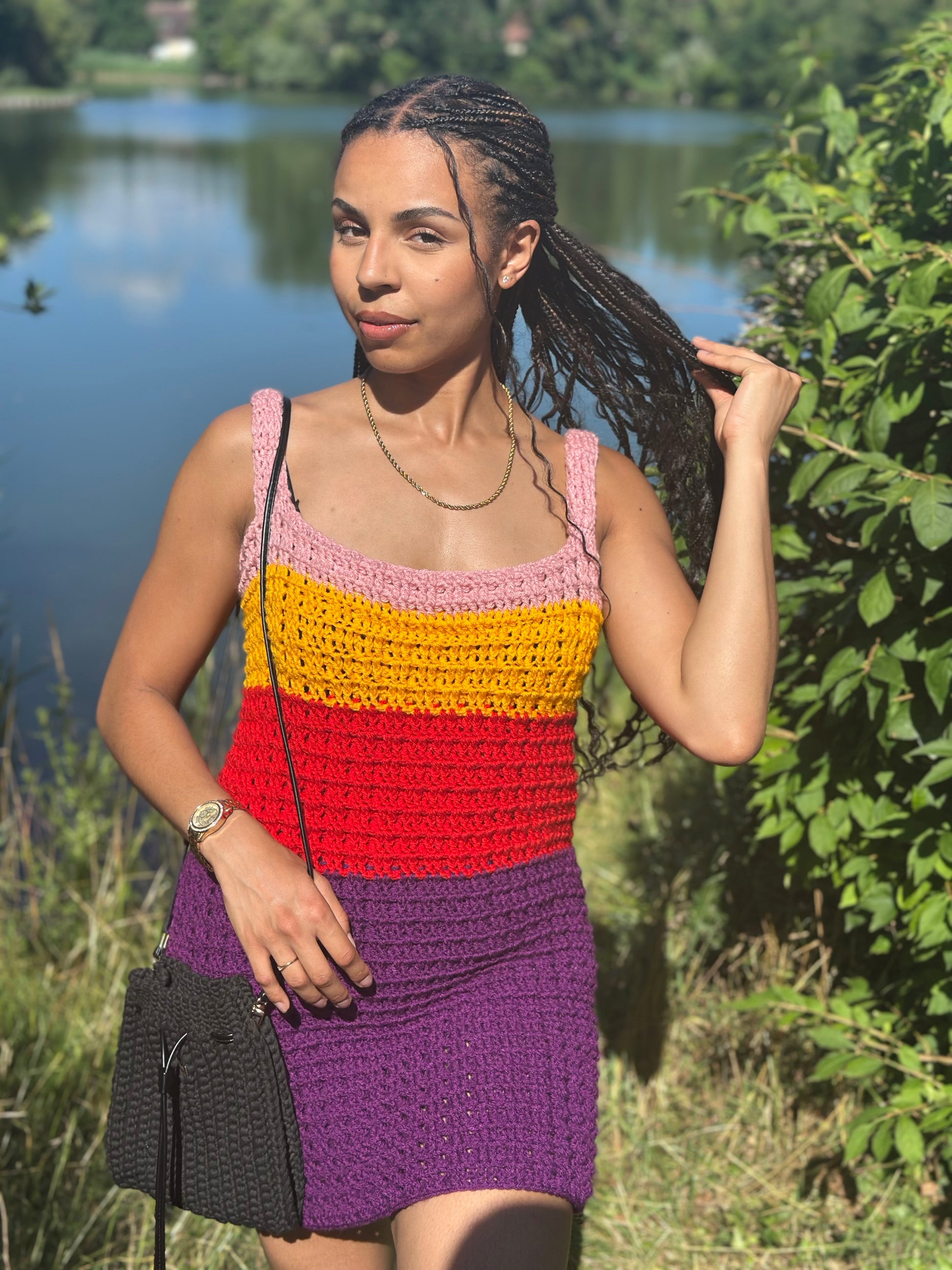 Avec son design épuré et sa confection intégralement manuelle, la robe Élysa révèle la beauté discrète du crochet. Une création rare où tradition et élégance se rencontrent.