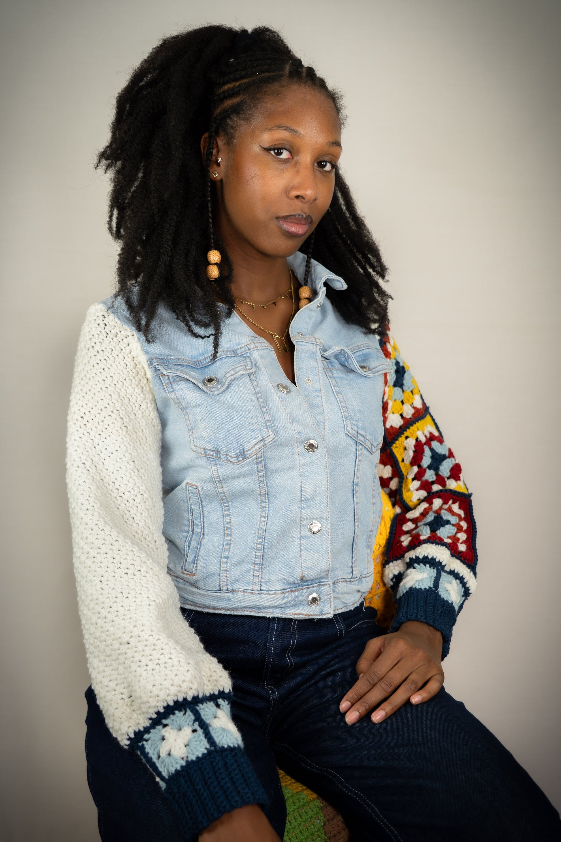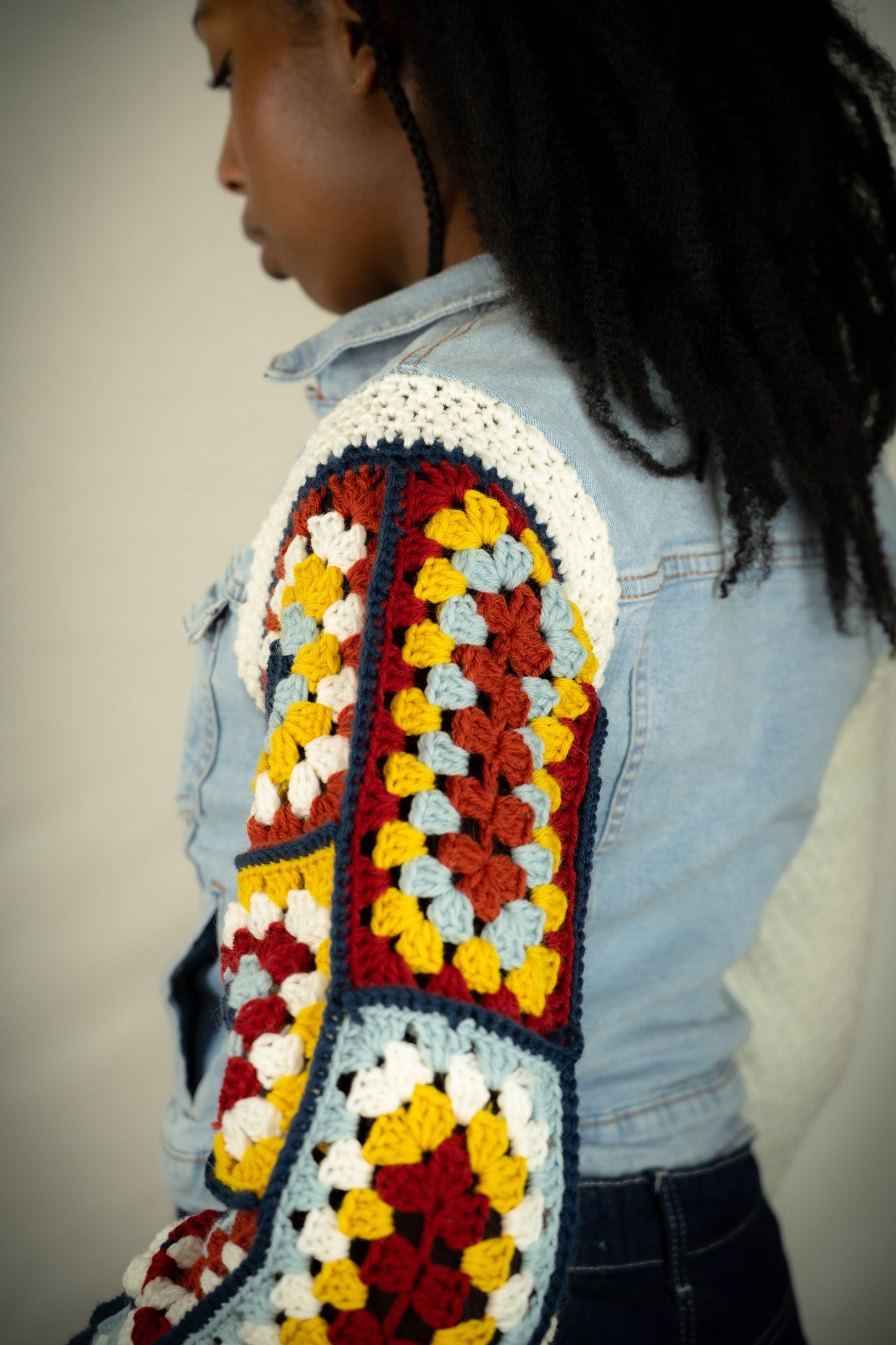 Sous ses airs de denim classique, Étreinte du Fil cache une âme tissée de patience et de poésie. Chaque manche, entièrement réalisée à la main, unit la rigueur du jean à la délicatesse du crochet. Une rencontre entre force et douceur, entre le geste ancien et l’allure contemporaine.